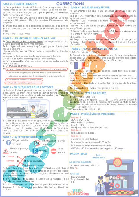 Correction La police – Cahier de vacances – CM1 – CM2 – 6ème rtf
