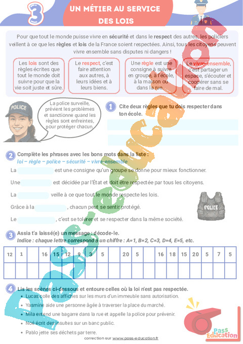 La police – Cahier de vacances – CM1 – CM2 – 6ème pdf