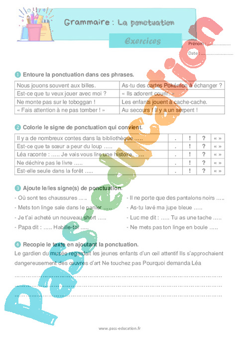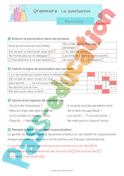 Exercices Correction ce1 ponctuation de fin de phrase et les signes du discours pdf