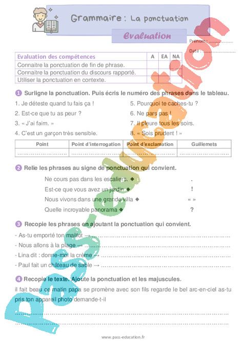 Evaluation ce1 ponctuation de fin de phrase et les signes du discours rapporté pdf