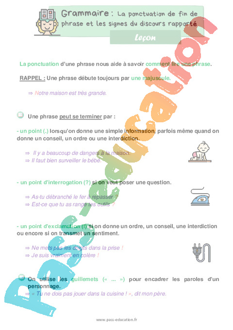 Leçon ce1 La ponctuation de fin de phrase et les signes du discours rapporté pdf