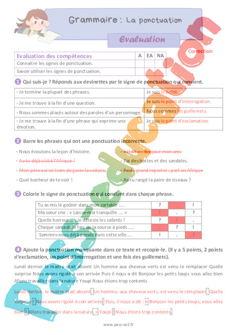 La ponctuation – Évaluation grammaire pour le ce2 Correction pdf