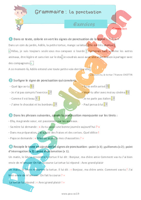La ponctuation – Exercices grammaire pour le ce2 Correction pdf