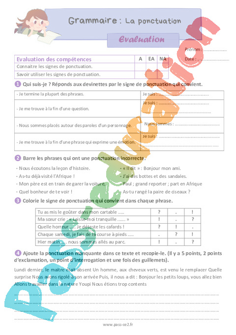 La ponctuation – Évaluation grammaire pour le ce2 pdf