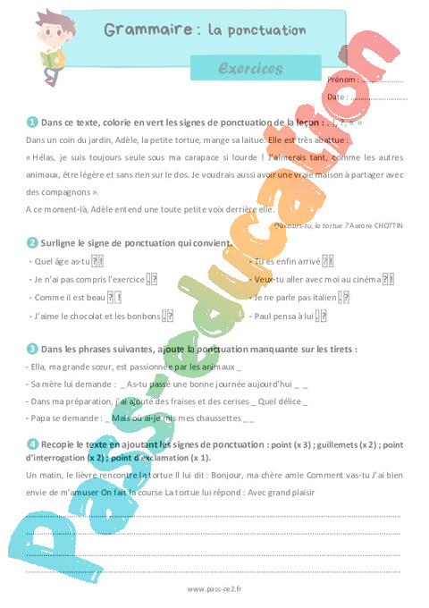 La ponctuation – Exercices grammaire pour le ce2 pdf