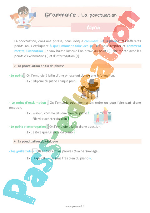 Leçon de grammaire pour le ce2 sur la ponctuation.