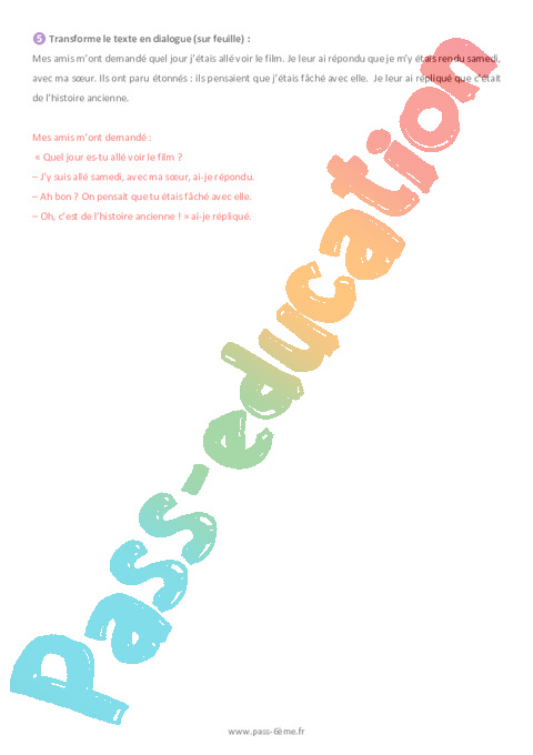 ❺ Transforme le texte en dialogue (sur feuille) :