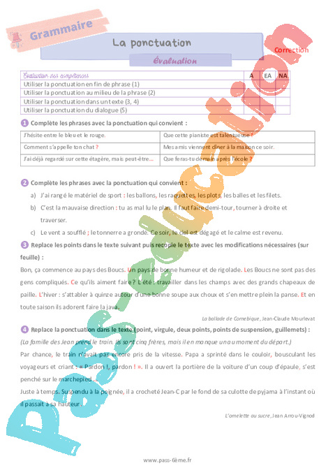 Correction La ponctuation – Evaluation de grammaire pour la 6ème pdf