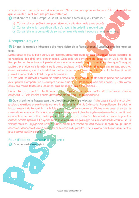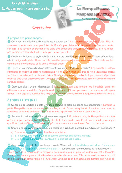 Correction Questionnaire 4ème Littérature La Rempailleuse, Maupassant,1882 pdf