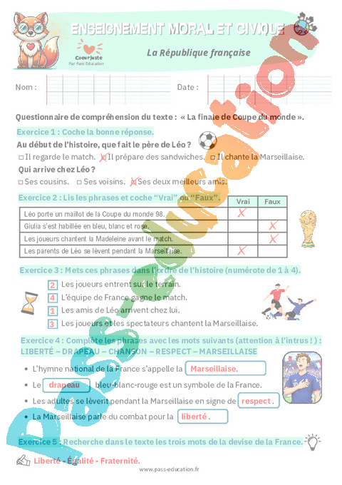 6. Correction- Evaluation - La République française – Ce1 pdf