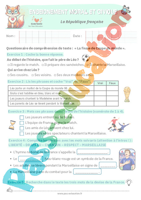 6. Evaluation - La République française – Ce1 pdf