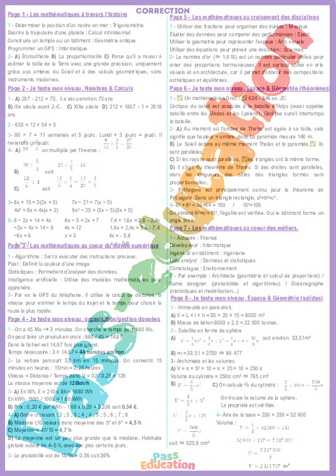 Correction La semaine des Maths – Cahier de vacances – 4ème – 3ème pdf