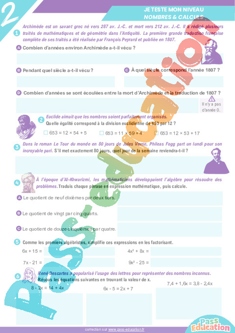2. JE TESTE MON NIVEAU – NOMBRES & CALCULS