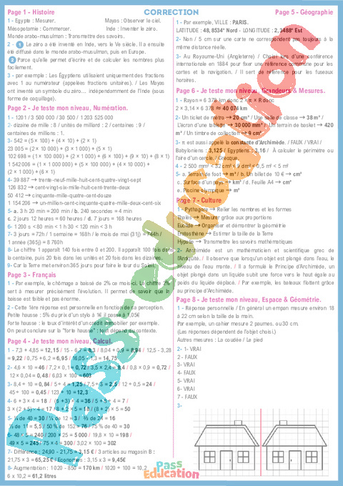 Correction La semaine des Maths – Cahier de vacances – 6ème – 5ème pdf