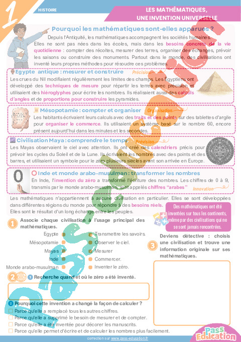 compter des récoltes, mesurer des terres, organiser des échanges, prévoir les saisons ou construire des monuments.