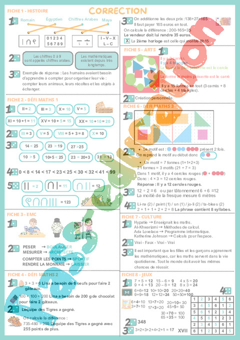 Correction La semaine des Maths – Cahier de vacances – CE1 – CE2 pdf