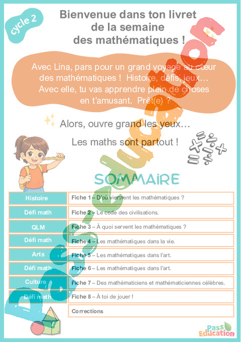 Cahier de vacances sur la semaine des Maths à imprimer.