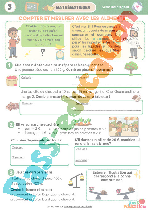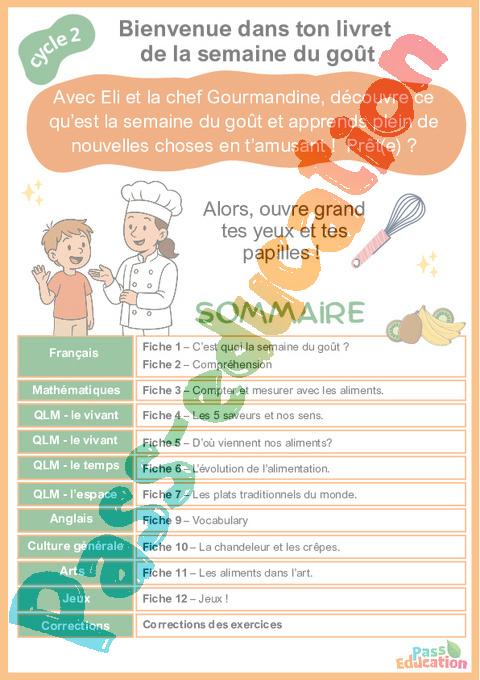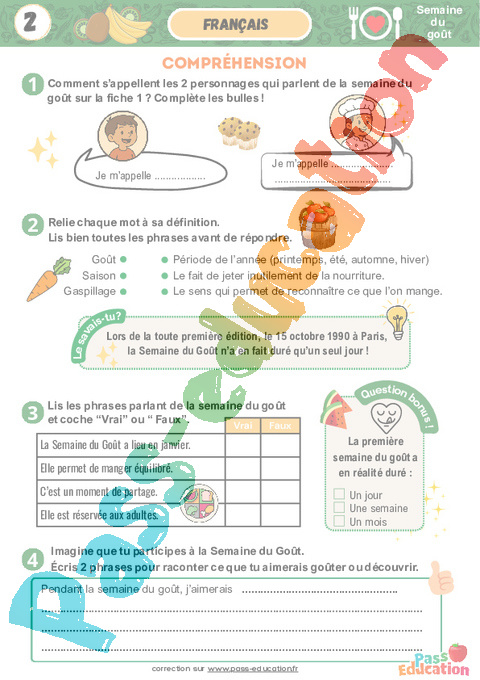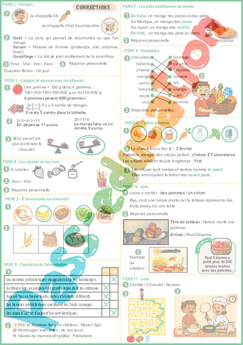 Correction La semaine du goût – CE1 – CE2 – Fichier d’activités pdf