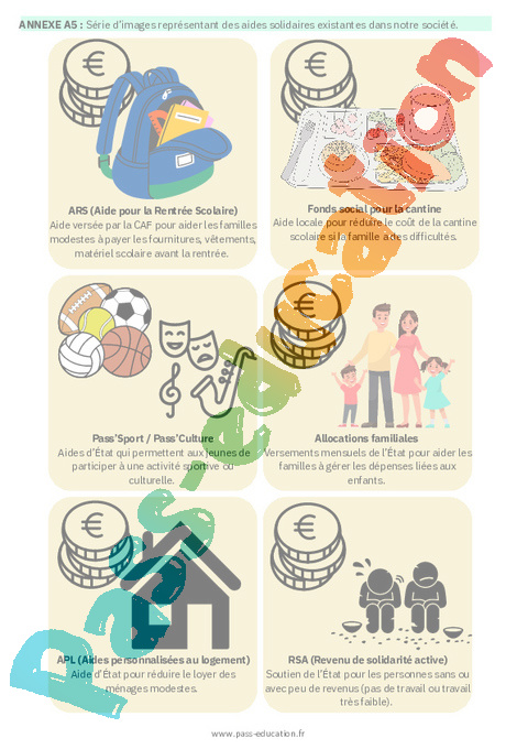 a. L’enseignant a disposé dans un coin de la classe des images qui représentent des aides solidaires existantes dans notre société (Annexe A5).