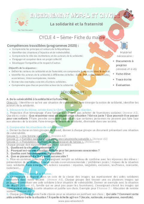 1. Fiche de préparation La solidarité et la fraternité – 5ème pdf