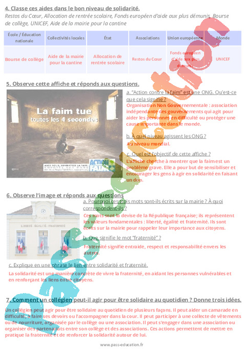 2. Correction Fiche élève- Solidarité et fraternité – 5ème pdf