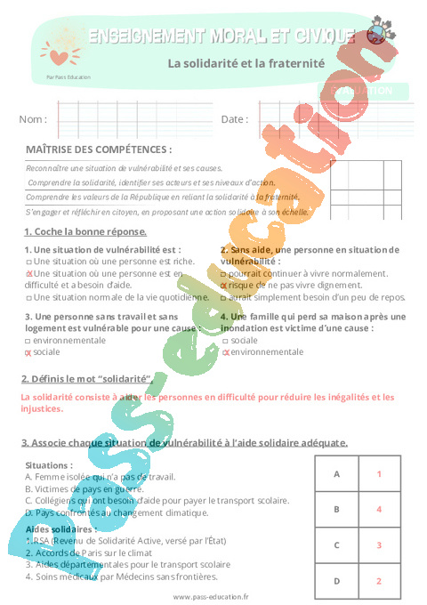4. Correction Evaluation – Solidarité et fraternité – 5ème pdf