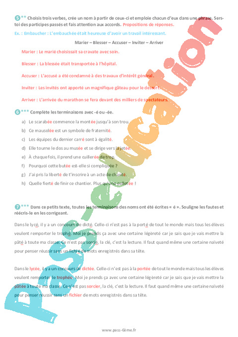Correction Exercices 6ème La terminaison des noms en [é] rtf