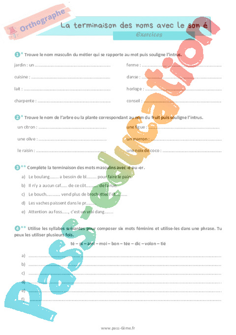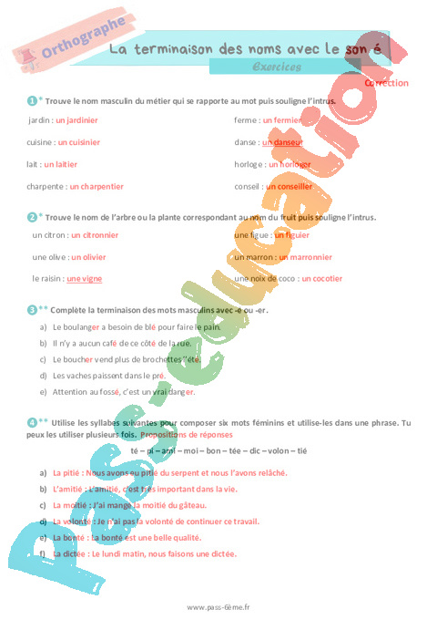 Correction Exercices 6ème La terminaison des noms en [é] pdf