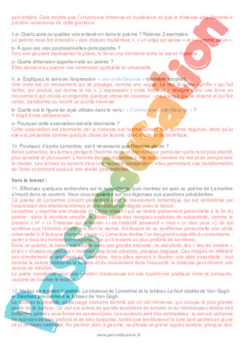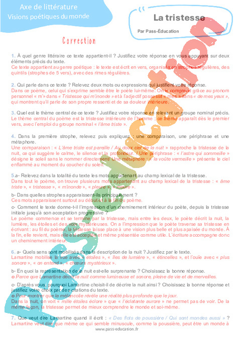 Correction Questionnaire La tristesse (Alphonse de Lamartine) – 3ème pdf