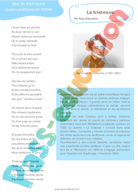 Littérature La tristesse (Alphonse de Lamartine) – 3ème pdf