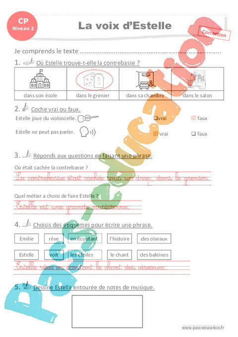 Correction Questionnaire La voix d’Estelle – CP – Luminéo – Niveau 2 pdf