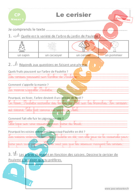 Correction Questionnaire Le cerisier – CP – Luminéo – Niveau 3 pdf