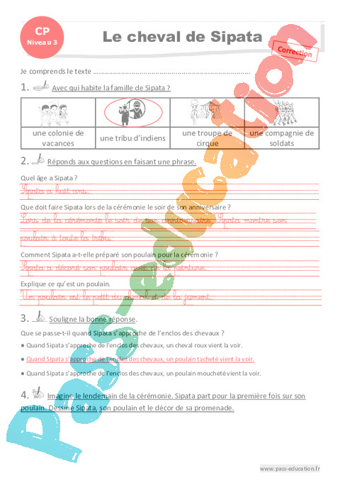 Correction Questionnaire Le cheval de Sipata – CP – Luminéo – Niveau 3 pdf
