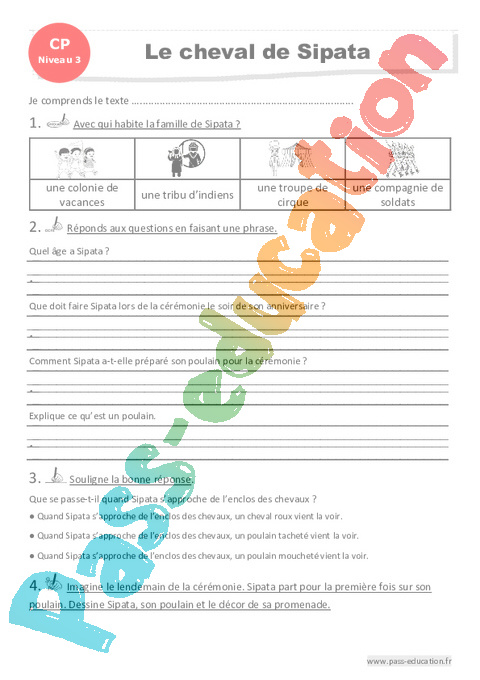 Questionnaire Le cheval de Sipata – CP – Luminéo – Niveau 3 pdf