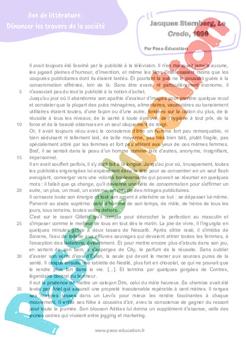 Littérature Le Credo (Jacques Sternberg) – 3ème pdf