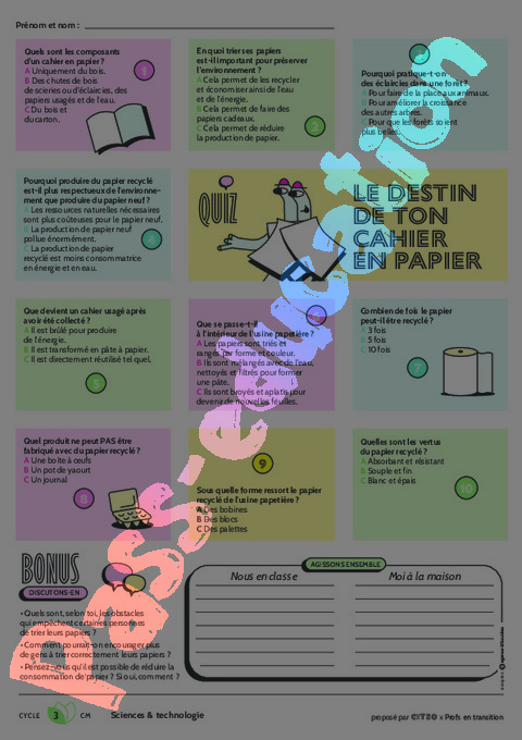 - Le destin de ton cahier en papier