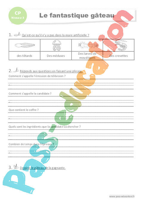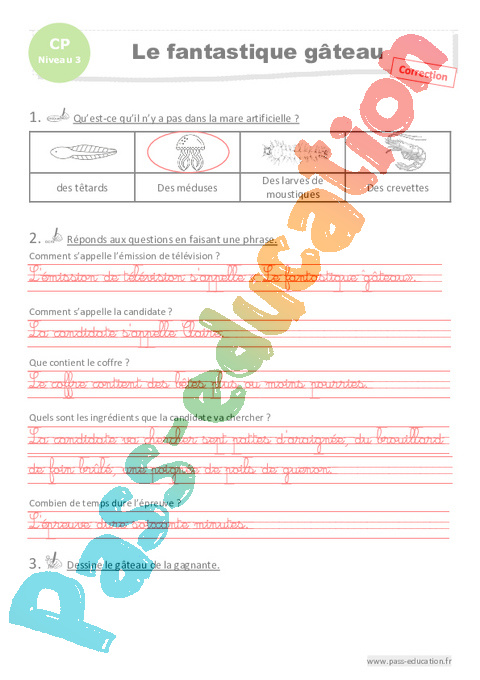 Correction Questionnaire Le fantastique gâteau – CP -Luminéo pdf