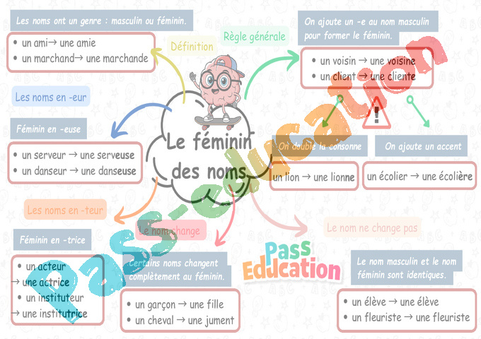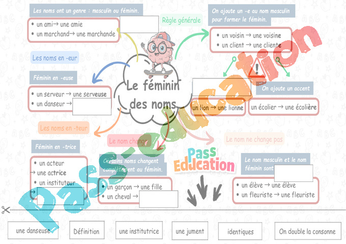 Le féminin des noms – Carte mentale – CE2 pdf