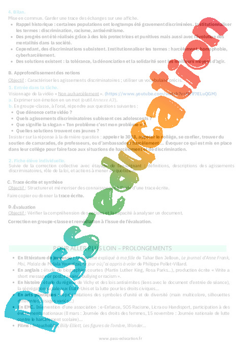1. Fiche de préparation Agissements discriminatoires – 5ème - EMC pdf