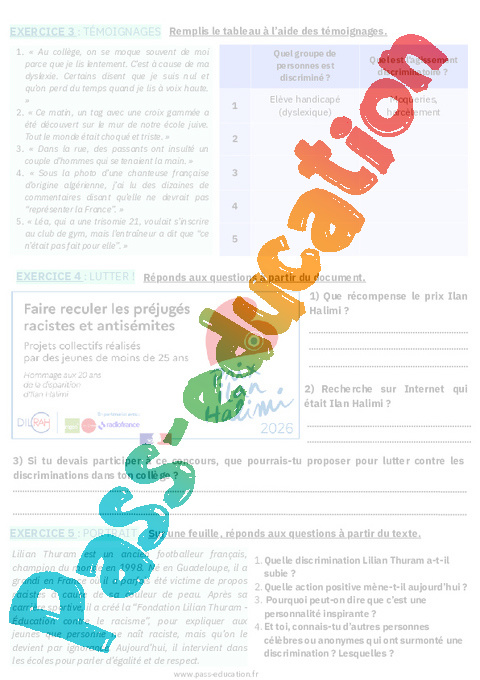 2. Fiche Exercices Discrimination et inclusion – 5ème pdf