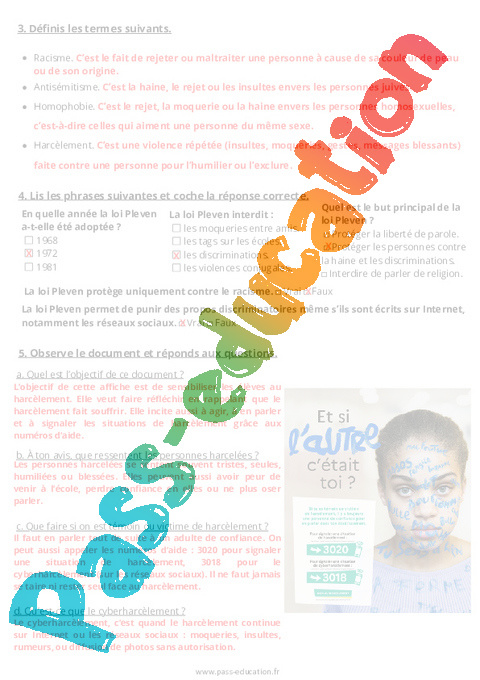 2. Correction Fiche élève Agissements discriminatoires – 5ème - EMC pdf