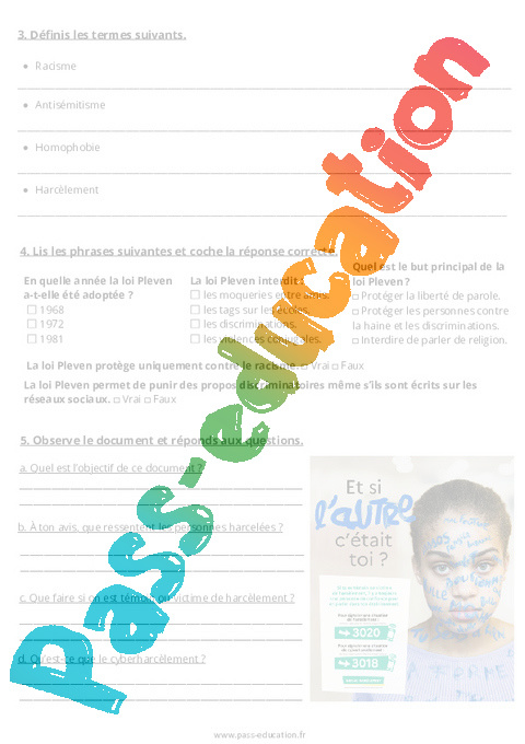 2. Fiche élève Agissements discriminatoires – 5ème - EMC pdf