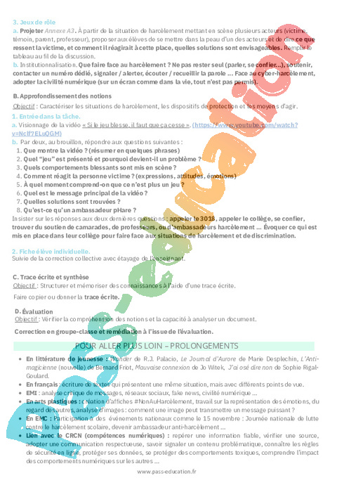 1 Fiche de préparation 5ème Le Harcèlement pdf