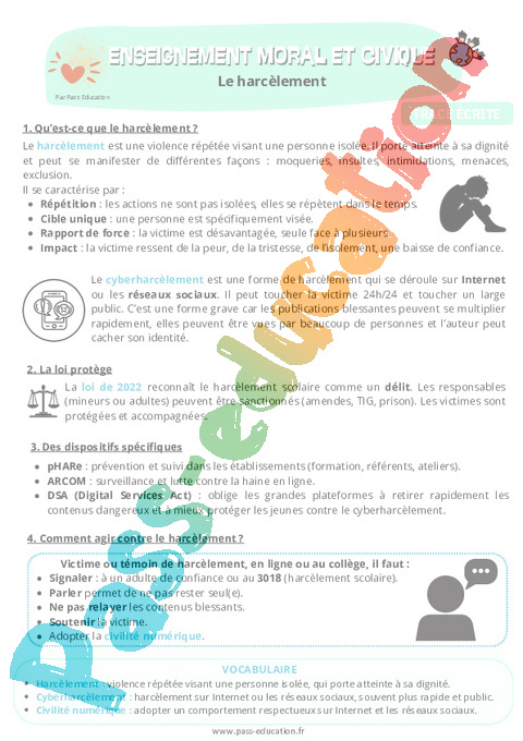Le harcèlement – 5ème – EMC Education morale et civique.