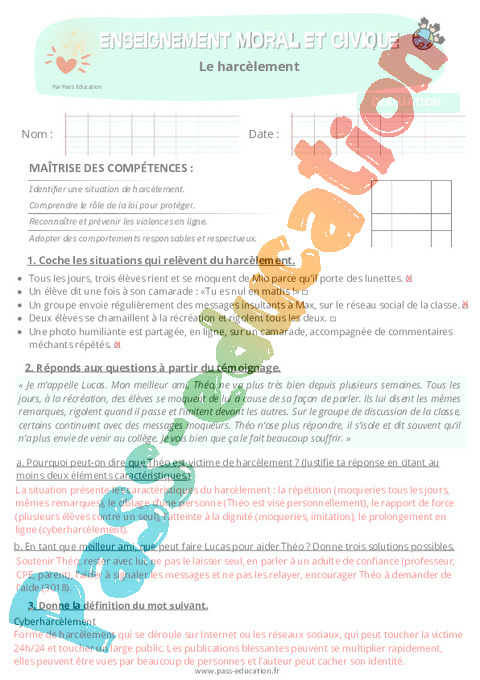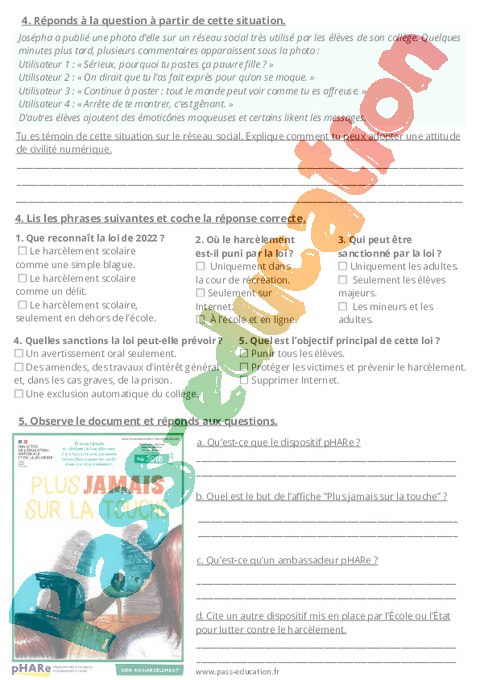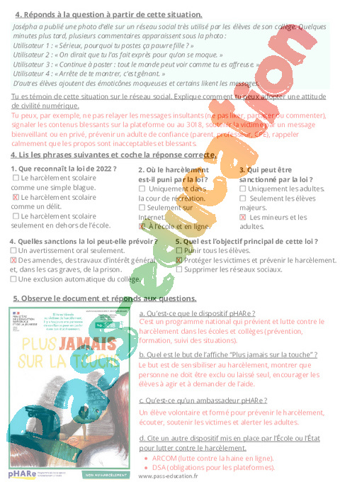 2 Correction Fiche élève 5ème Le Harcèlement pdf