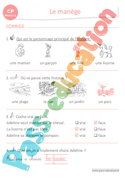 Correction Questionnaire Le manège – CP – Luminéo – Niveau 1 pdf