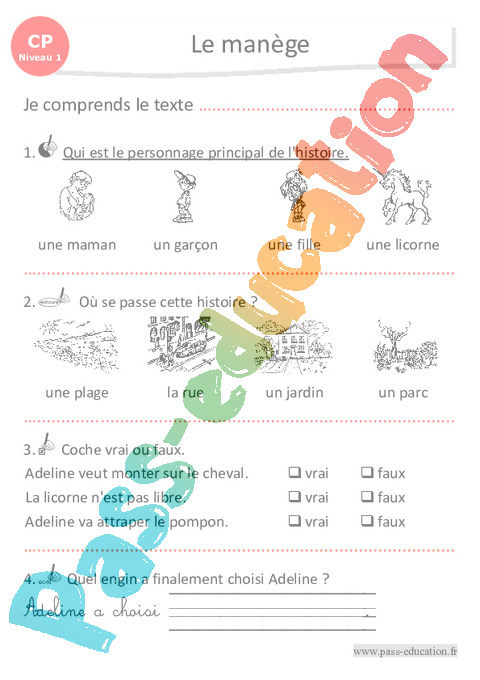 Questionnaire Le manège – CP – Luminéo – Niveau 1 pdf