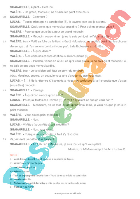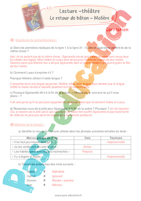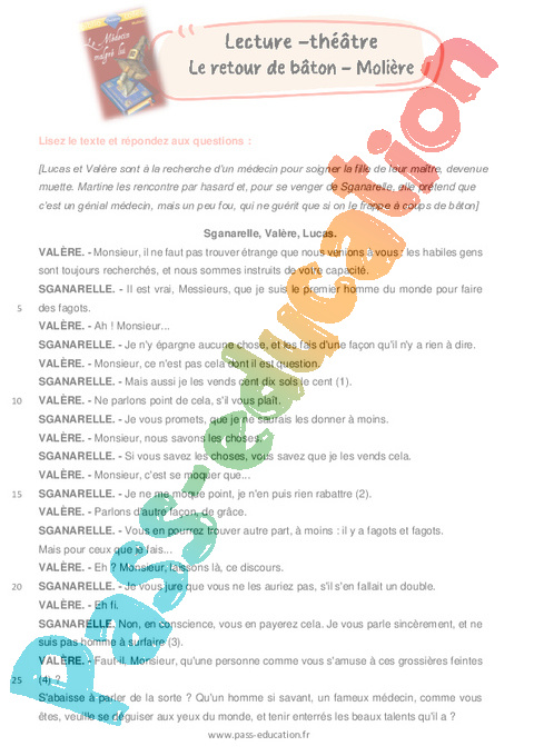 Correction Littérature + Questionnaire Le médecin malgré lui – 6ème pdf