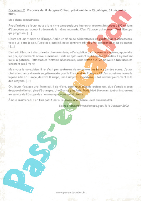 Document 2 : Discours de M. Jacques Chirac, président de la République, 31 décembre 2001.