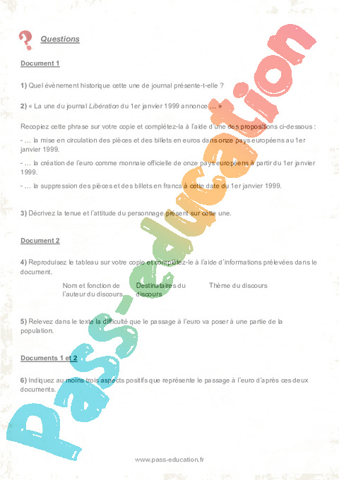 5) Relevez dans le texte la difficulté que le passage à l’euro va poser à une partie de la population.